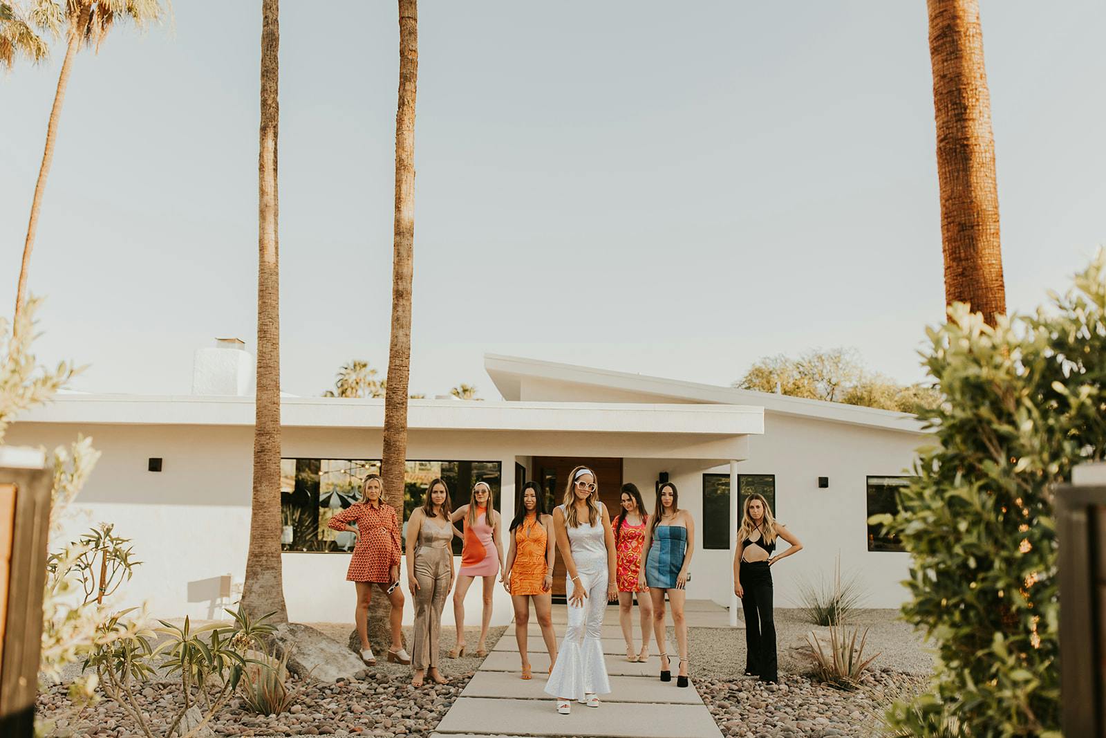 Who doesn't love a good disco?! This was literally such a fun evening with these babes channeling our inner 70s at Becca's last disco Palm Springs Bachelorette Party at a modern eclectic home called The Majestic Estate! This cute little home was tucked away in a the grooviest Palm Springs neighborhood and was the perfect fit for this crew that traveled near and far to celebrate their fave disco queen, Becca!