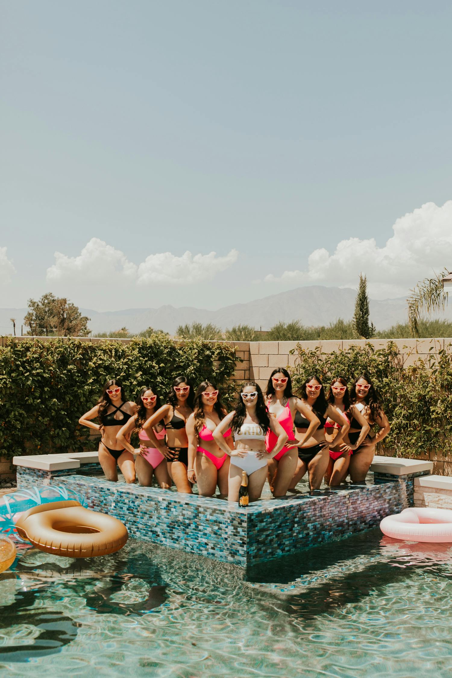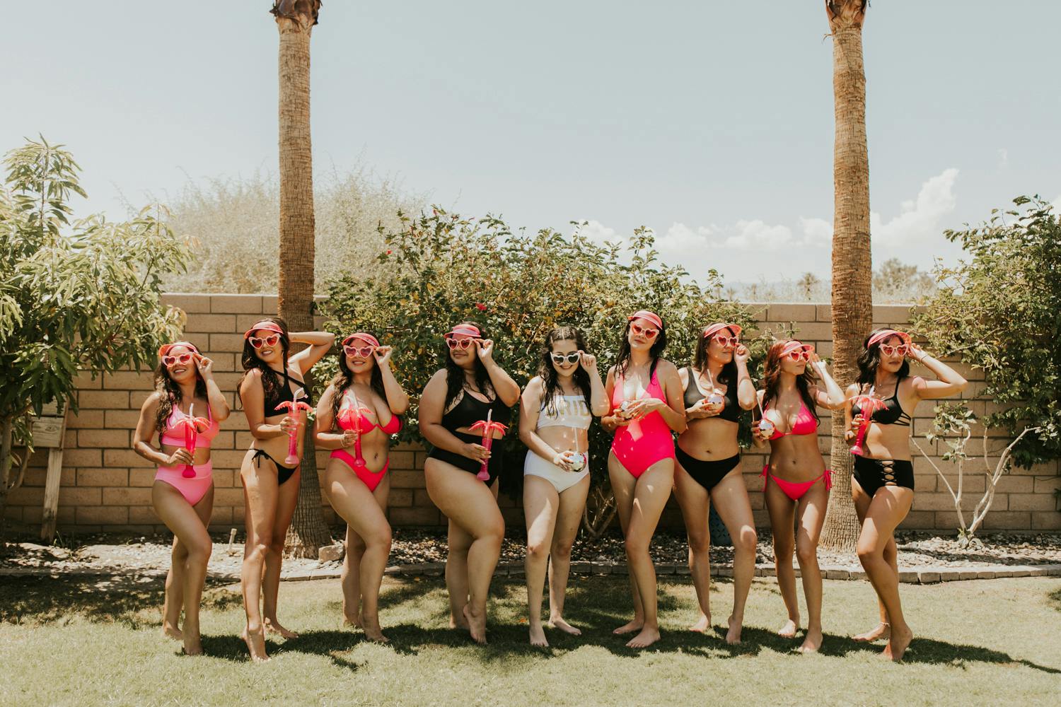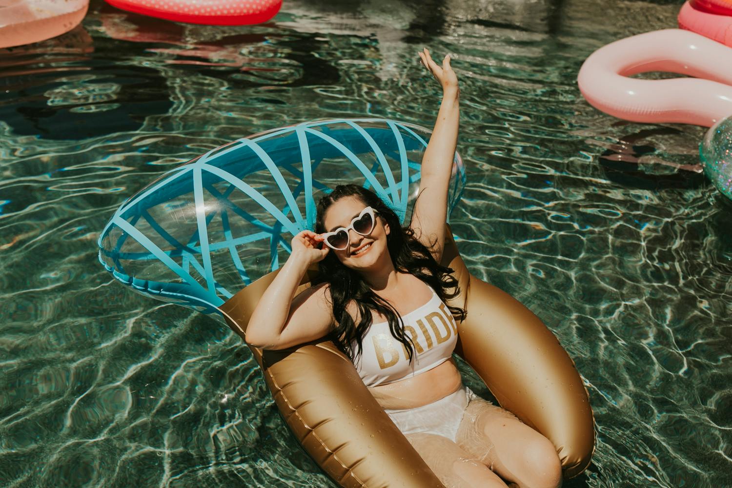 GRAB THE CHAMPAGNE, because we're hitting Palm Springs for the bachelorette of Yvette's dreams! I already knew this bachelorette party was going to be one for the books because Yvette has such a good eye for details + her overall style is ON POINT and someone who is just so fun to be around! From the Disco Ball cups, pink bride straws, custom tequila bottle labels, and the heart-shaped sunnies, this tropical palm springs bachelorette party is every bride's pink paradise dream come true!