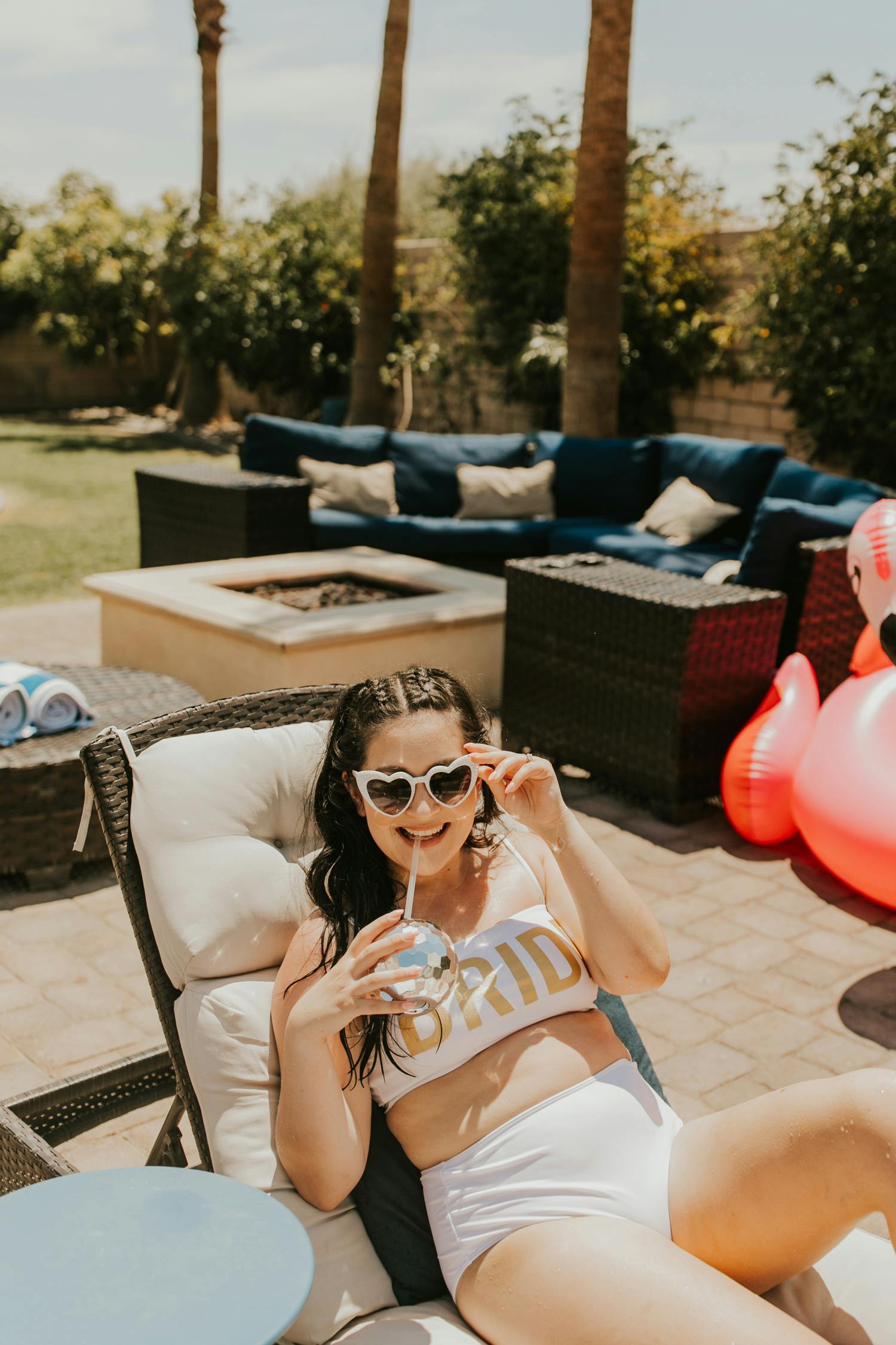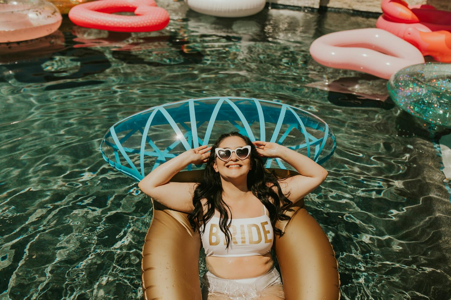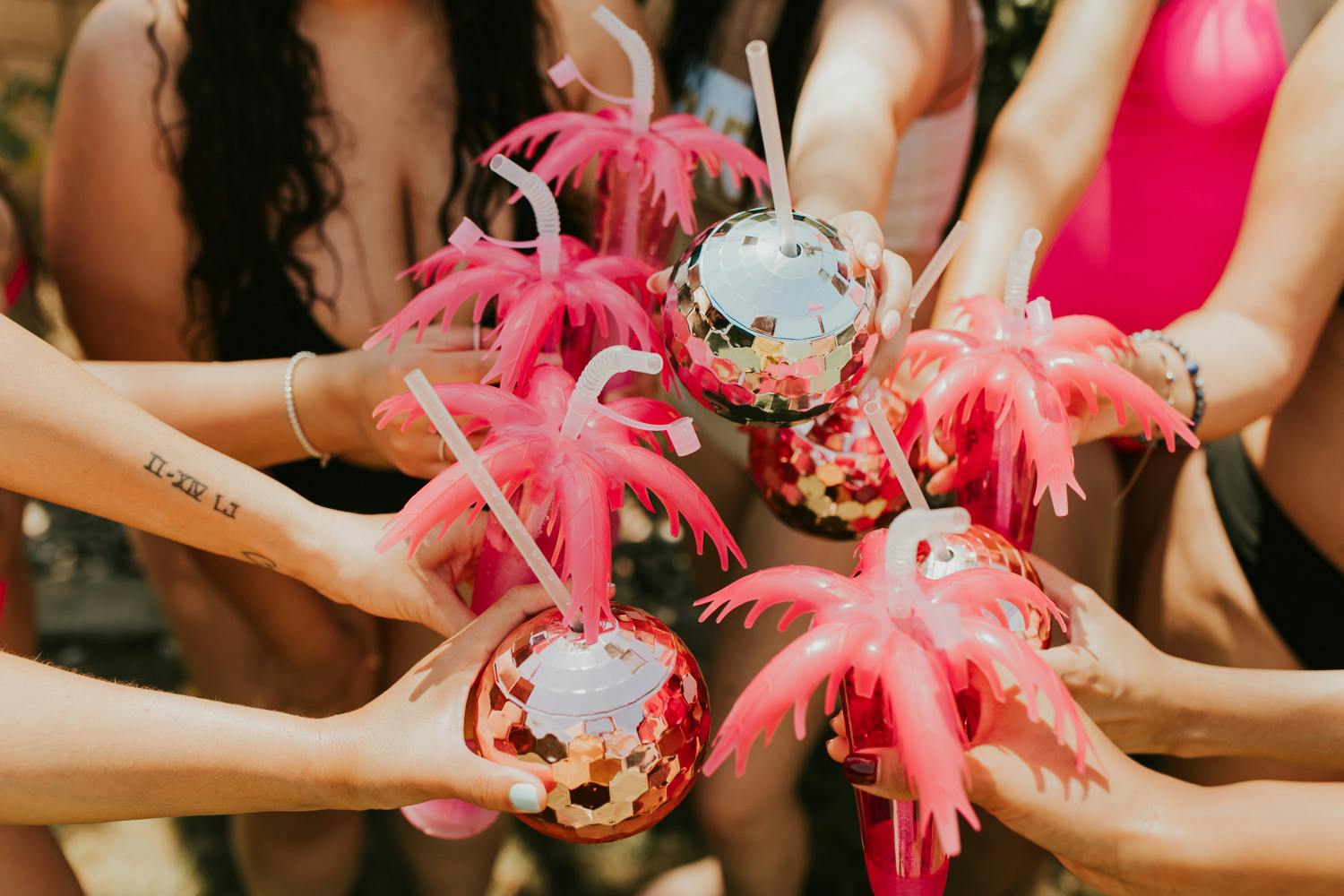 GRAB THE CHAMPAGNE, because we're hitting Palm Springs for the bachelorette of Yvette's dreams! I already knew this bachelorette party was going to be one for the books because Yvette has such a good eye for details + her overall style is ON POINT and someone who is just so fun to be around! From the Disco Ball cups, pink bride straws, custom tequila bottle labels, and the heart-shaped sunnies, this tropical palm springs bachelorette party is every bride's pink paradise dream come true!