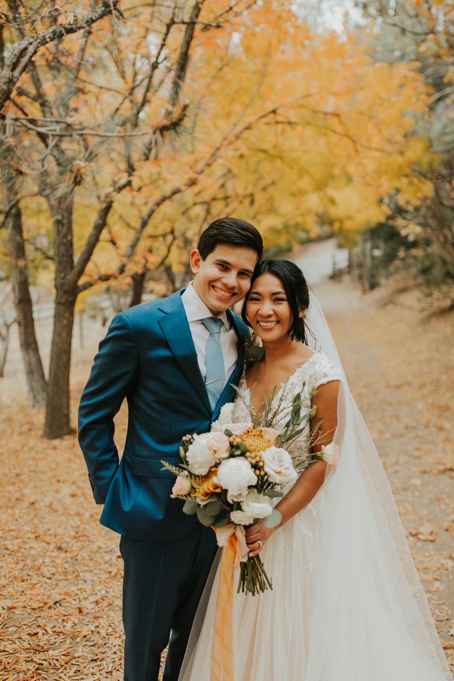 Tiffany and Nathan got married at Sacred Mountain in Julian this week with their immediate family by their sides with the mountains surrounding them and it was everything I would want my own wedding to be! They had the sweetest little ceremony overlooking the mountains, ran around with me in this fall goodness, and shared their first dance among twinkly lights, they enjoyed a dinner with their families and then stayed in the Honeymoon Suite there at Sacred Mountain!