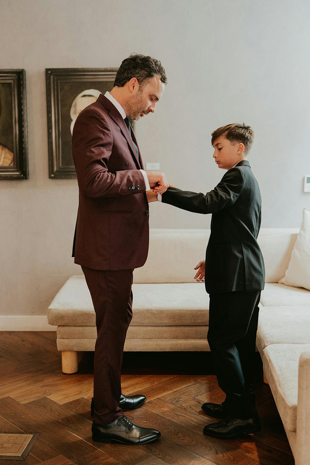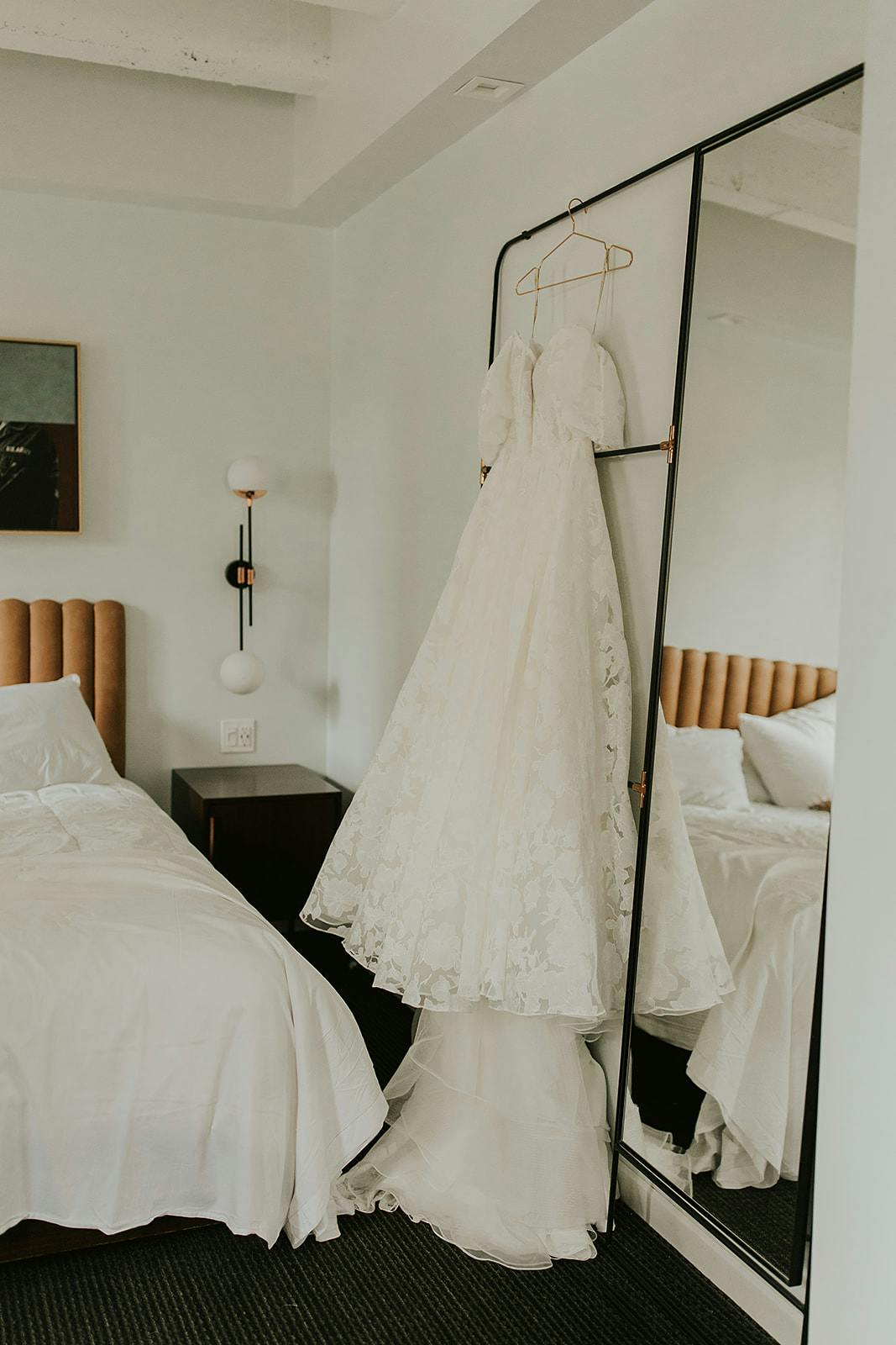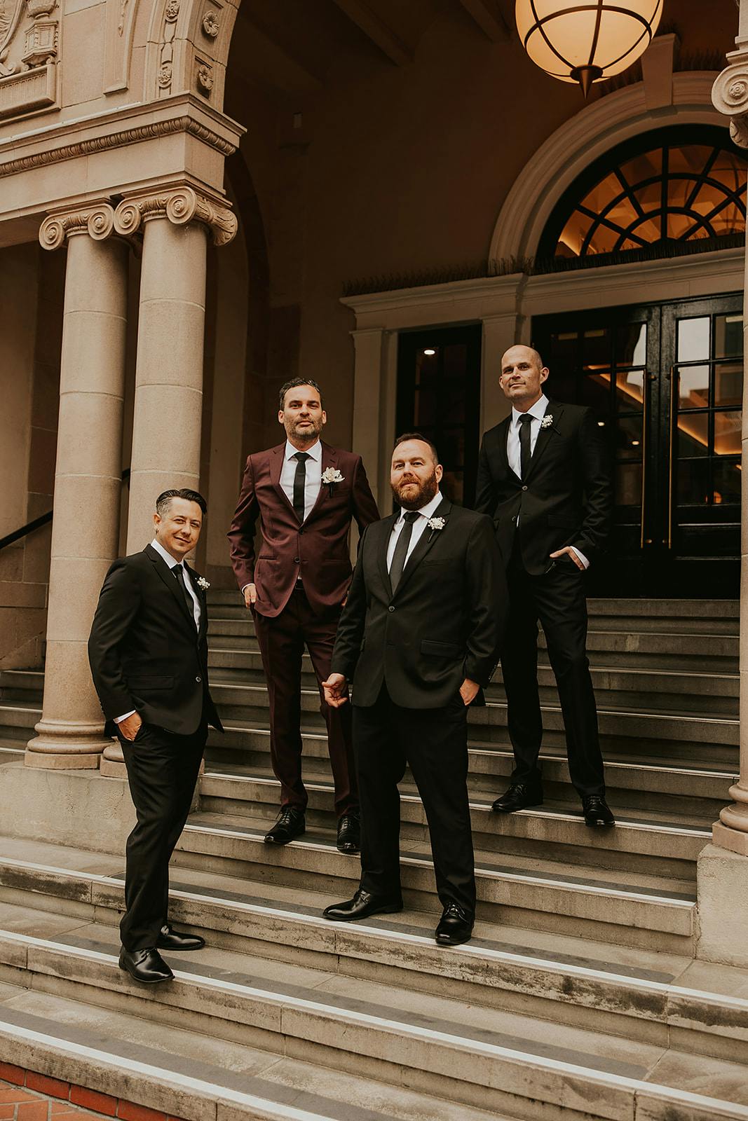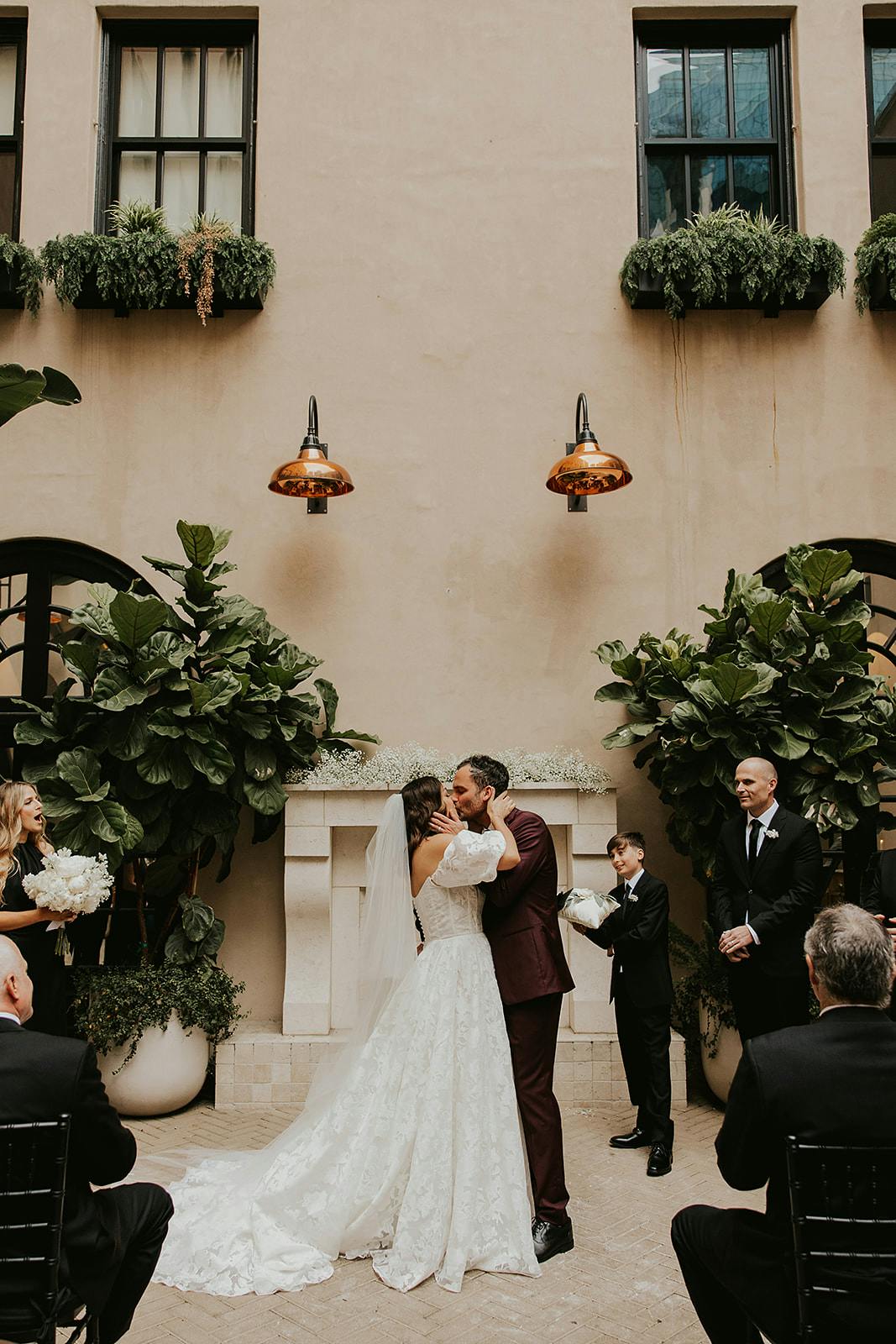 Their day started with a low-key morning getting ready with their wedding parties. Alongside Weston and his wedding party was his son Cal, and I just thought it was the most precious moment of dad and son helping each other get ready. After they were ready, the adults shared drinks at the bar to chill and hangout before the I-Do's. Jessica was loved on by her best girl friends who have been in her life for decades, and her sweet mama and auntie. Before the ceremony, they squeezed in a bite of pizza and truffle fries with cocktails on the side. Can we say... GOALS?! Their ceremony was tucked away in the most beautiful courtyard where they were joined by the ultimate hype crew aka the most loving family and friends. They shared vows to eachother had a special touch as well... hers handwritten, and his typed on his typewriter... staying true to the love letters they've shared with each other in the past.