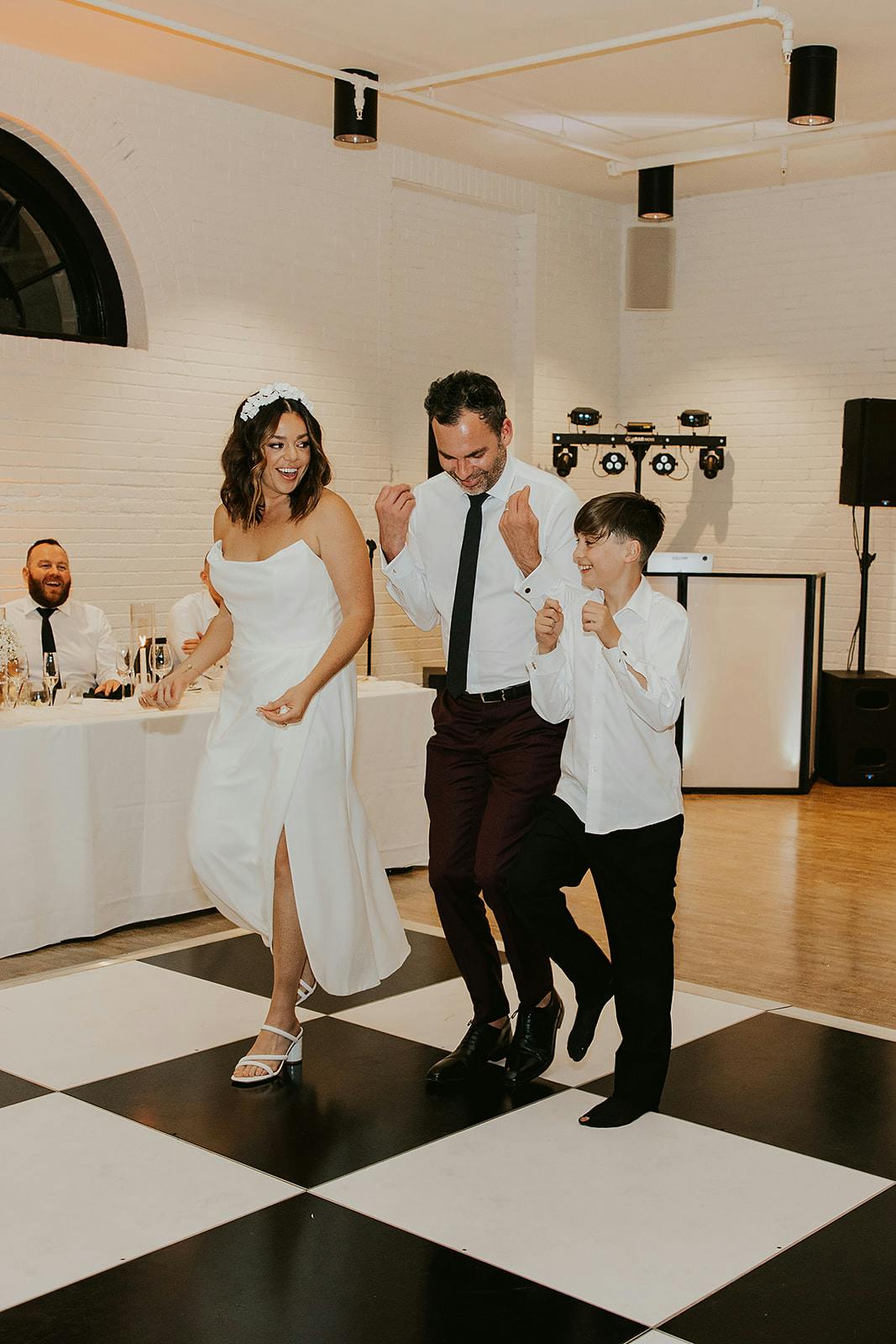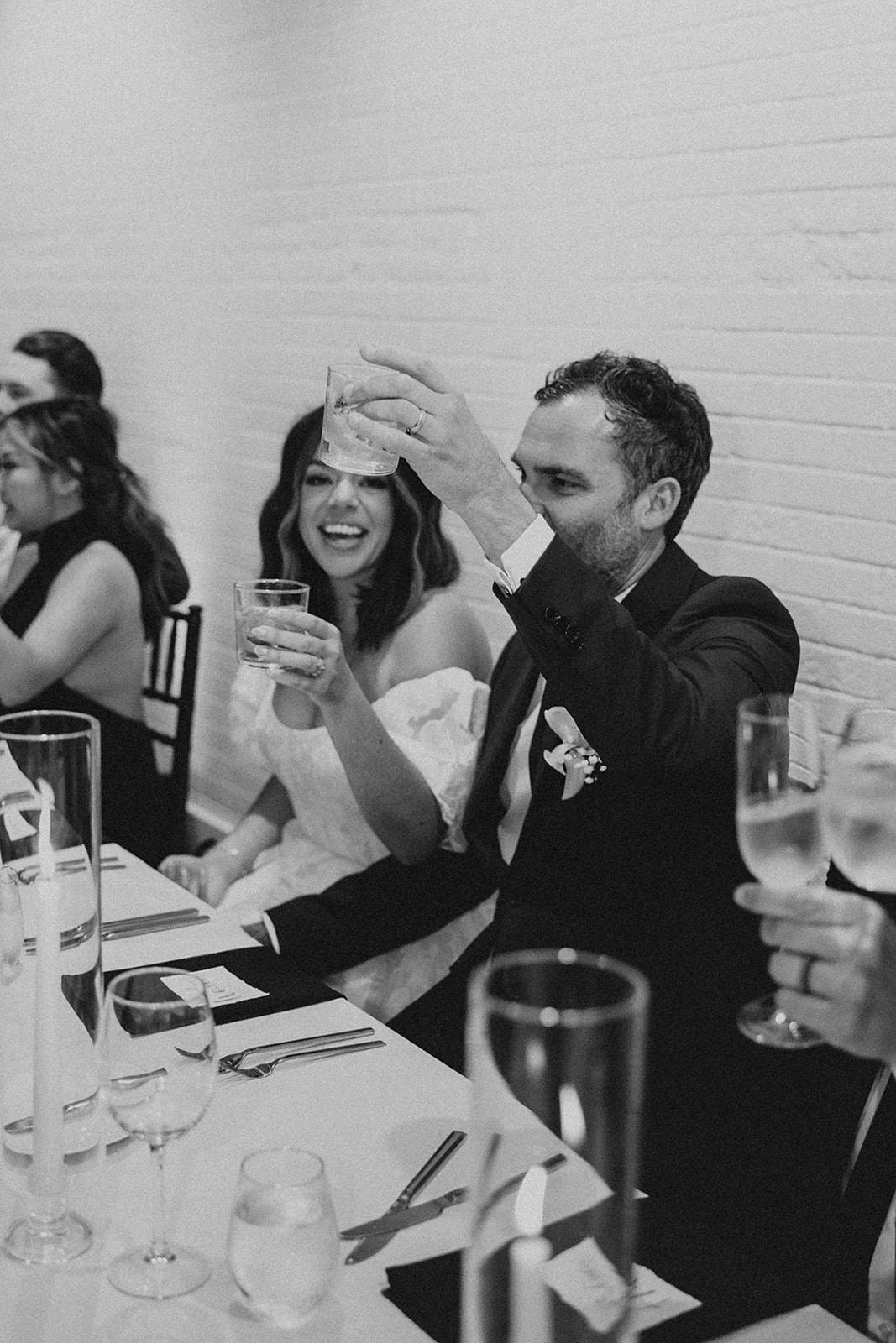 Their vintage-inspired wedding details at their reception was also giving me all of the nostalgic aesthetic from their black and white checkerboard dance floor, to their classic white-on-white Lambeth Cake! They opened their dance floor together as a new official family of three, showing off their moves and let me tell you... their guests came to PARTAY!! But that didn't stop us from sneaking away for late night cocktails at the bar, and sneaking away for elevator kisses!
